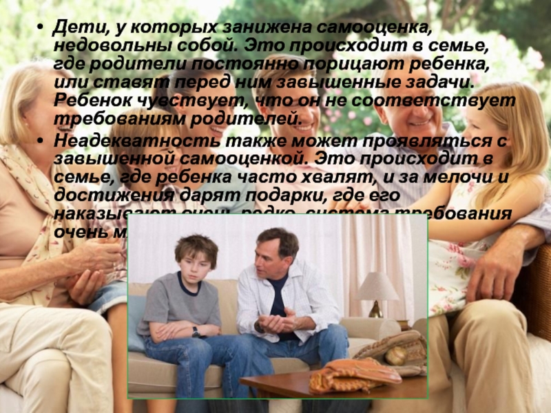 Дети, у которых занижена самооценка, недовольны собой. Это происходит в семье,