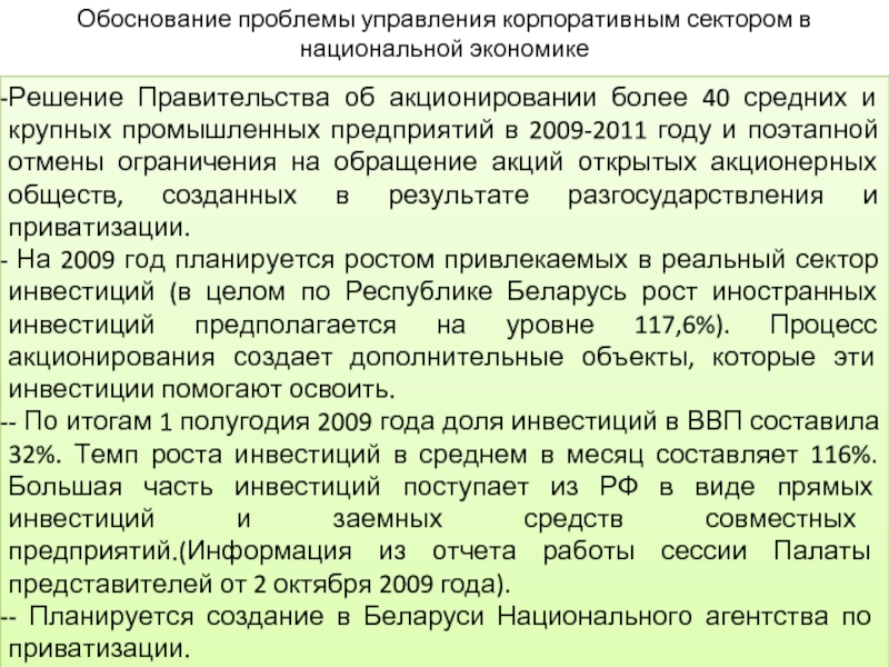 Обоснование проблемы управления корпоративным сектором в национальной экономике
