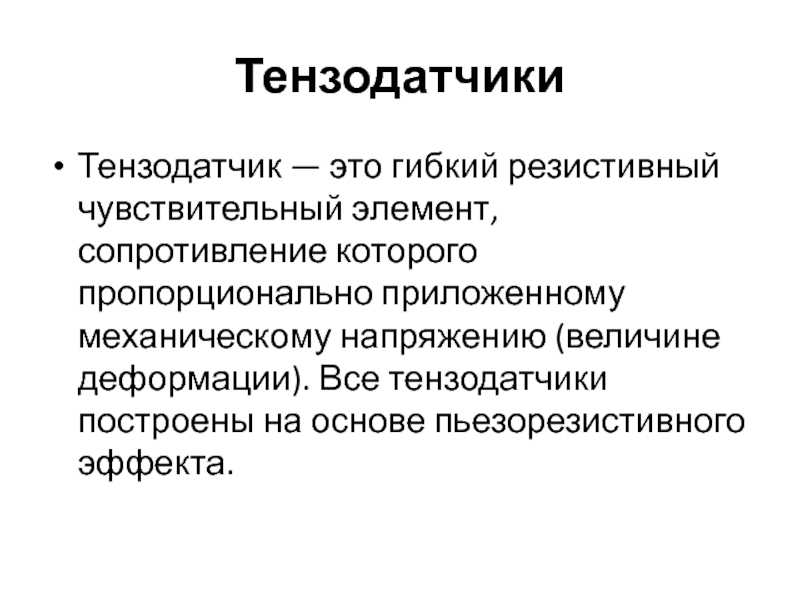 механическому напряжению (величине деформации). Все тензодатчики построены на основе пьезорезистивного эффекта.