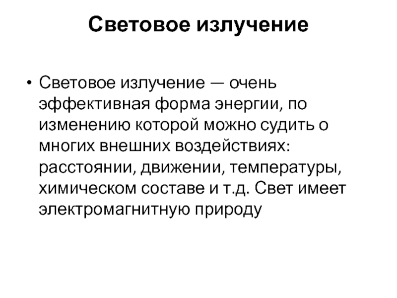 можно судить о многих внешних воздействиях: расстоянии, движении, температуры, химическом составе и т.д. Свет имеет электромагнитную природу