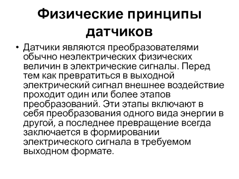 Датчики являются преобразователями обычно неэлектрических физических величин в электрические