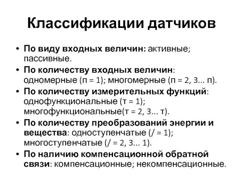 По количеству измерительных функций: однофункциональные (т = 1); многофункциональные(т = 2, 3... т).