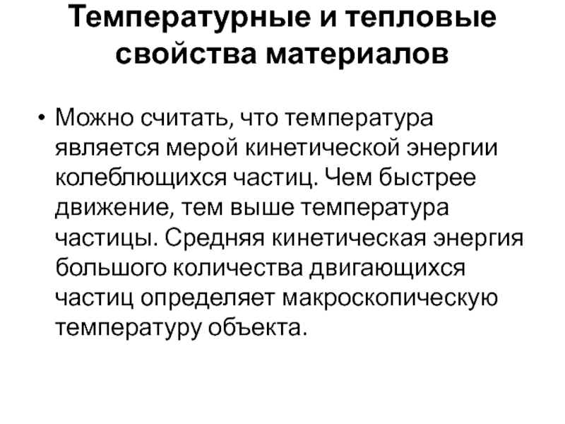 энергии колеблющихся частиц. Чем быстрее движение, тем выше температура частицы. Средняя кинетическая энергия большого количества двигающихся частиц определяет макроскопическую температуру объекта.