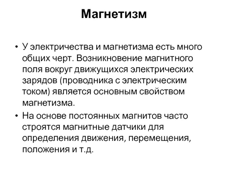 У электричества и магнетизма есть много общих черт. Возникновение магнитного поля