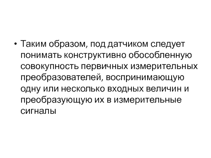 Таким образом, под датчиком следует понимать конструктивно обособленную совокупность первичных измерительных