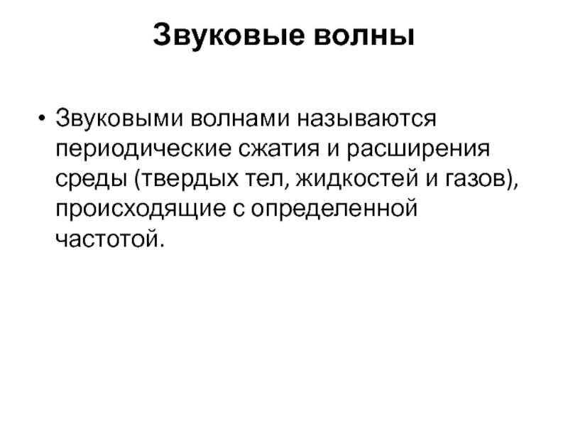 Звуковыми волнами называются периодические сжатия и расширения среды (твердых тел,