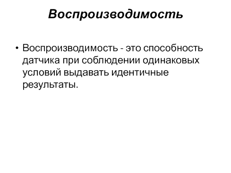 Воспроизводимость - это способность датчика при соблюдении одинаковых условий выдавать идентичные