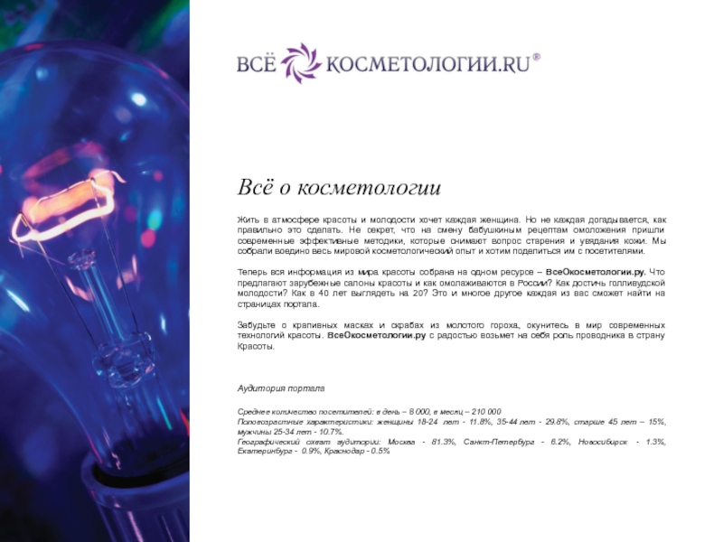 Забудьте о крапивных масках и скрабах из молотого гороха, окунитесь в мир современных технологий красоты. ВсеОкосметологии.ру с радостью возьмет на себя роль проводника в страну Красоты.