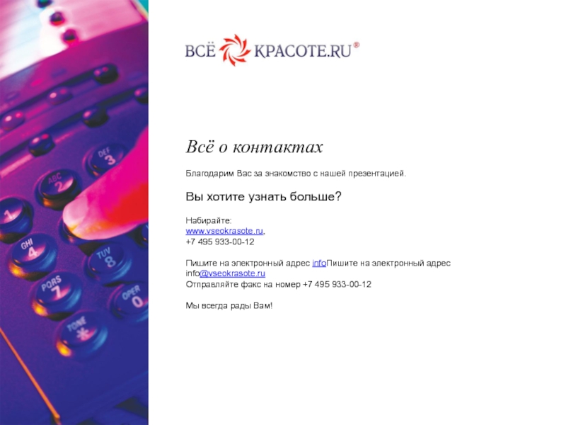 Пишите на электронный адрес infoПишите на электронный адрес info@vseokrasote.ru