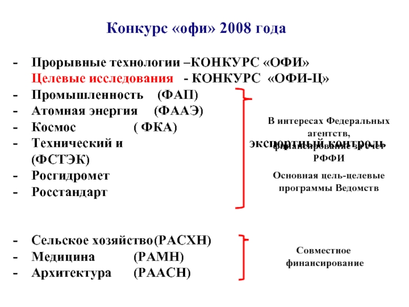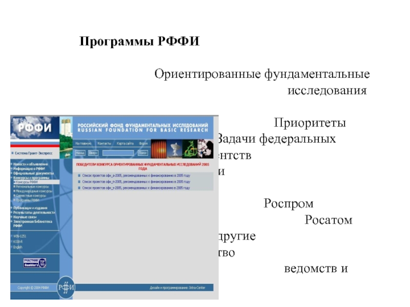 В интересах Федеральных агентств, финансирование за счет РФФИ