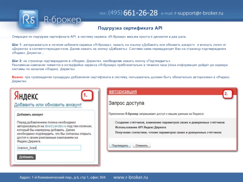 Данный личный кабинет имеет «полисертификатную» систему, т. е. возможность добавлять несколько сертификатов от разных аккаунтов в «Яндекс. Директе».