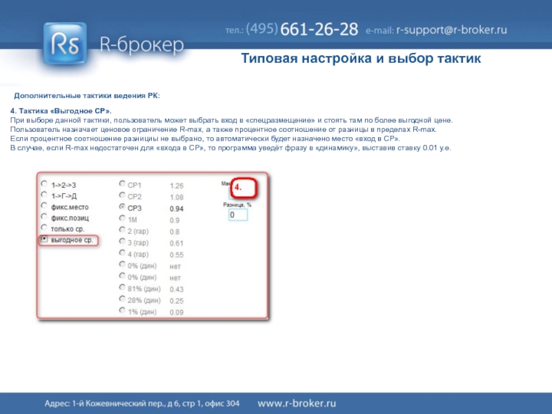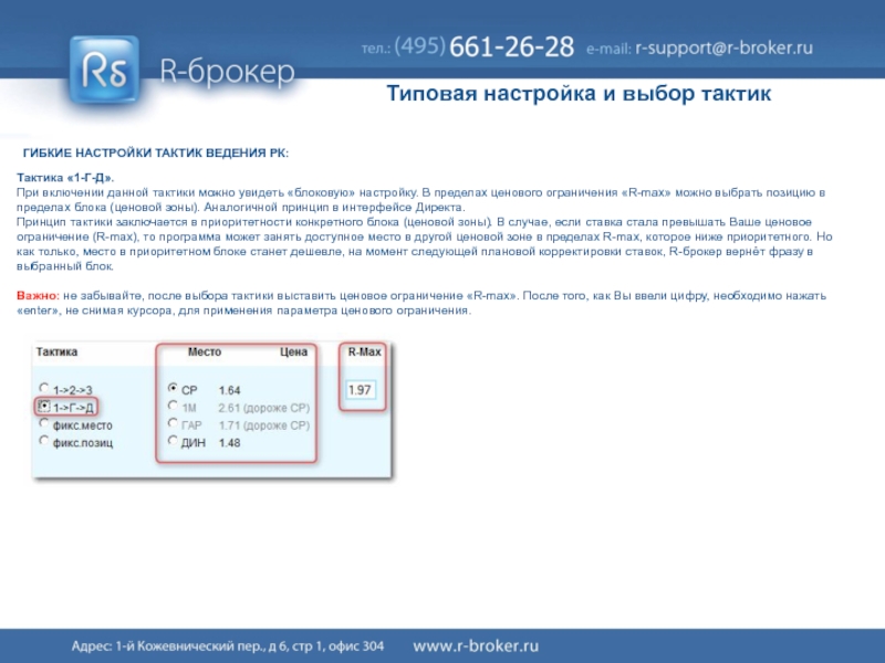 ГИБКИЕ НАСТРОЙКИ ТАКТИК ВЕДЕНИЯ РК: