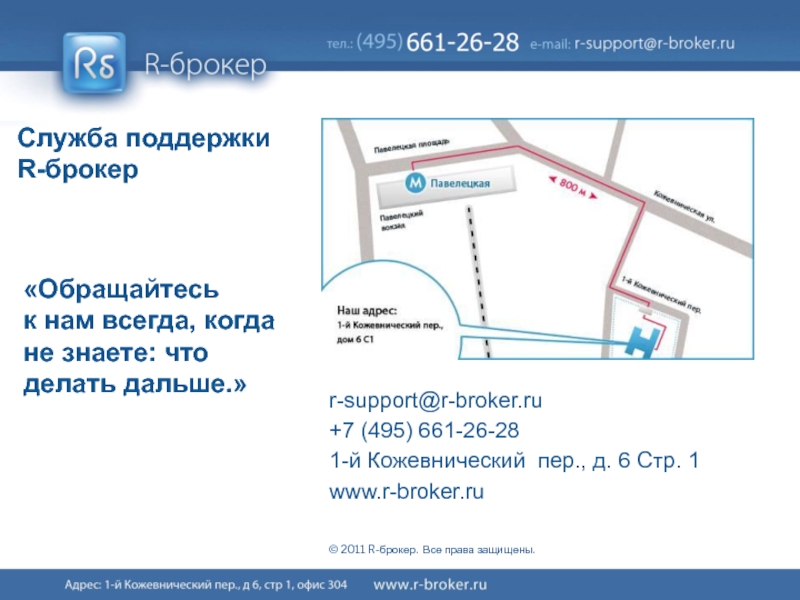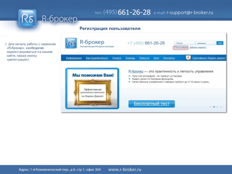 Важно: доступ к сервису «R-брокер» можно получить самостоятельно, зарегистрировавшись на сайте, или обратившись к менеджеру по электронной почте или телефону.