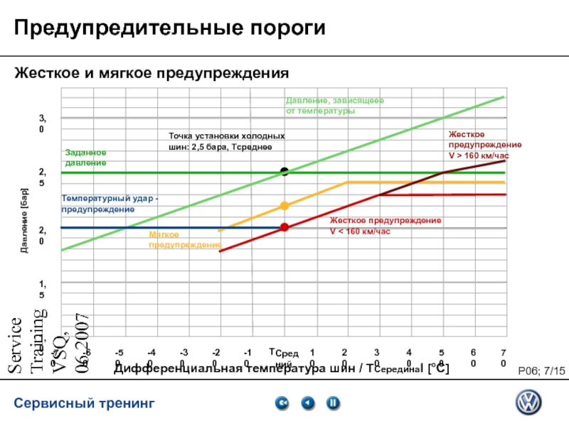Точка установки холодных шин: 2,5 бара, Tсреднее