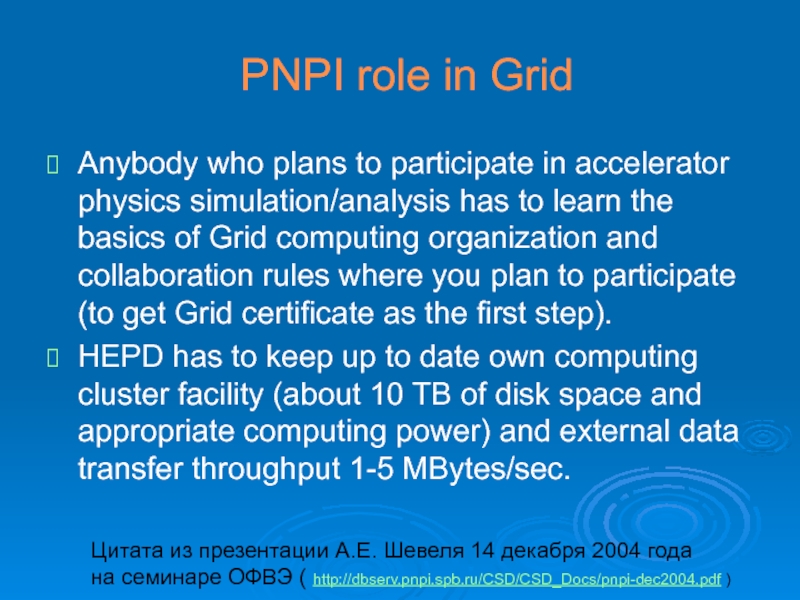 Цитата из презентации А.Е. Шевеля 14 декабря 2004 года
