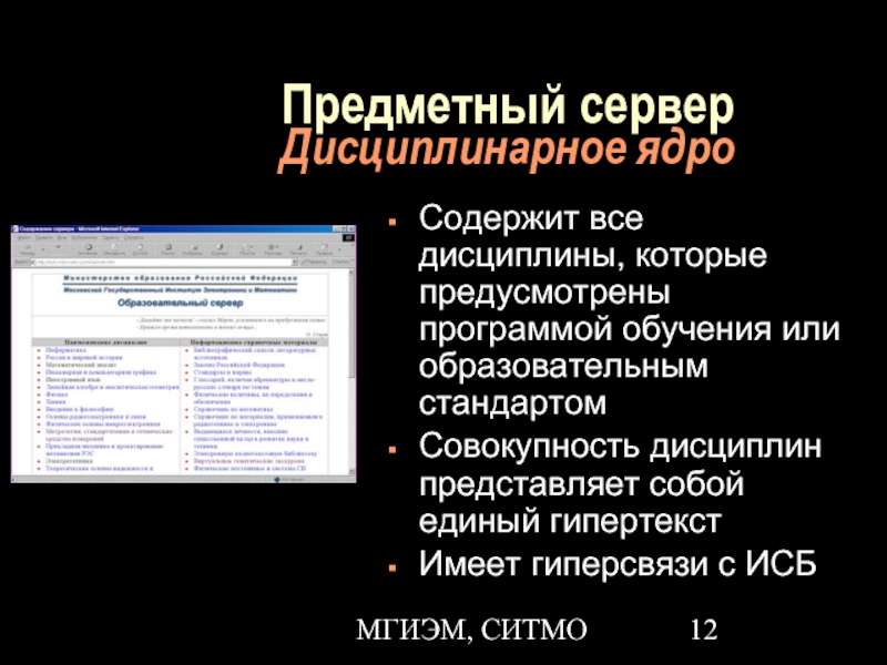дисциплинарного ядра (стандарты, персоналии, математика и т. п.)