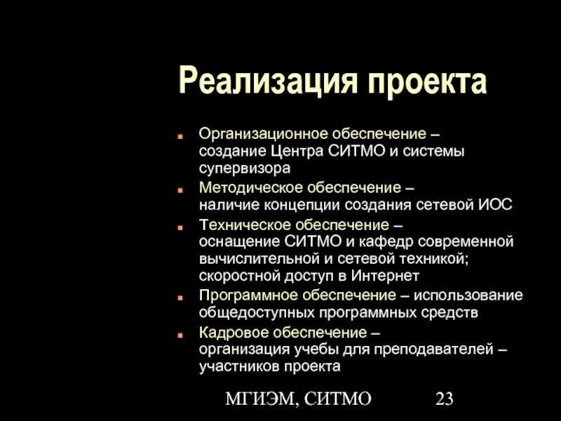 оснащение СИТМО и кафедр современной вычислительной и сетевой техникой; скоростной доступ в Интернет