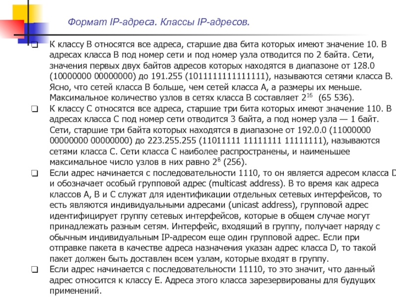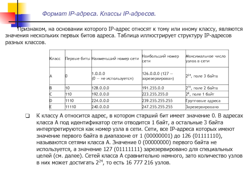 Слайд 24Формат IP-адреса. Классы IP-адресов.