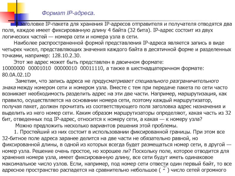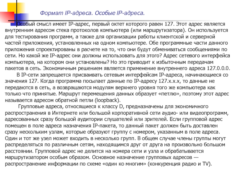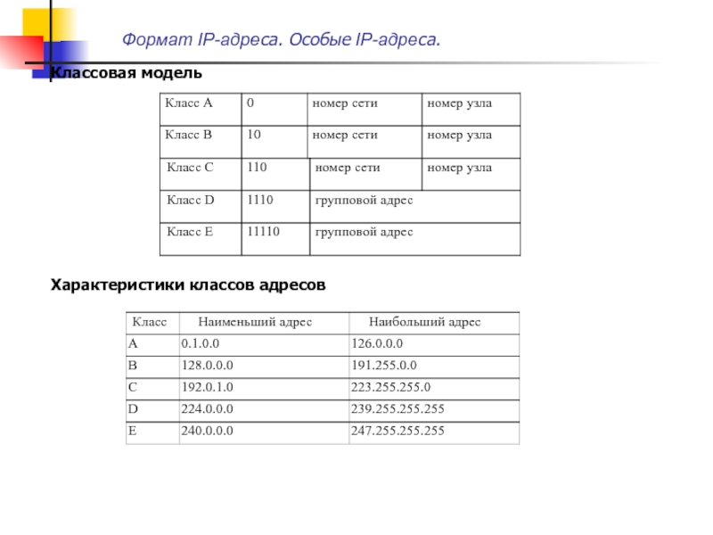 Слайд 28Формат IP-адреса. Особые IP-адреса.