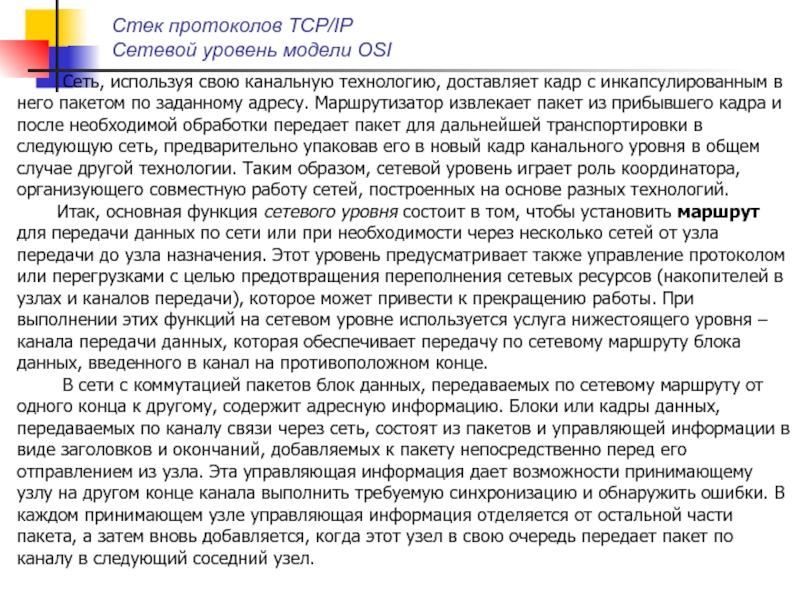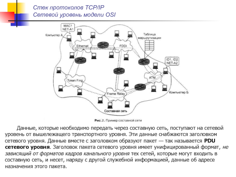 Слайд 6 Данные, которые необходимо передать через составную сеть, поступают на сетевой уровень
