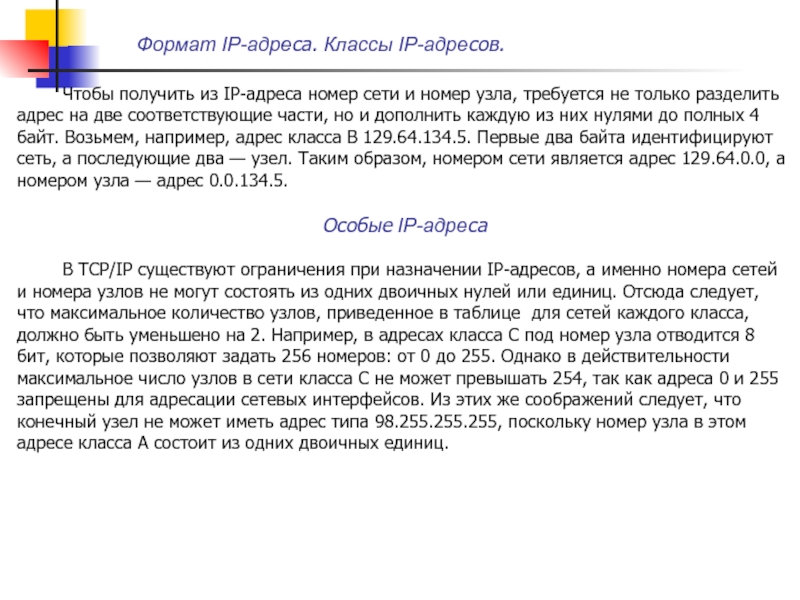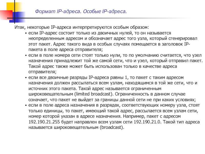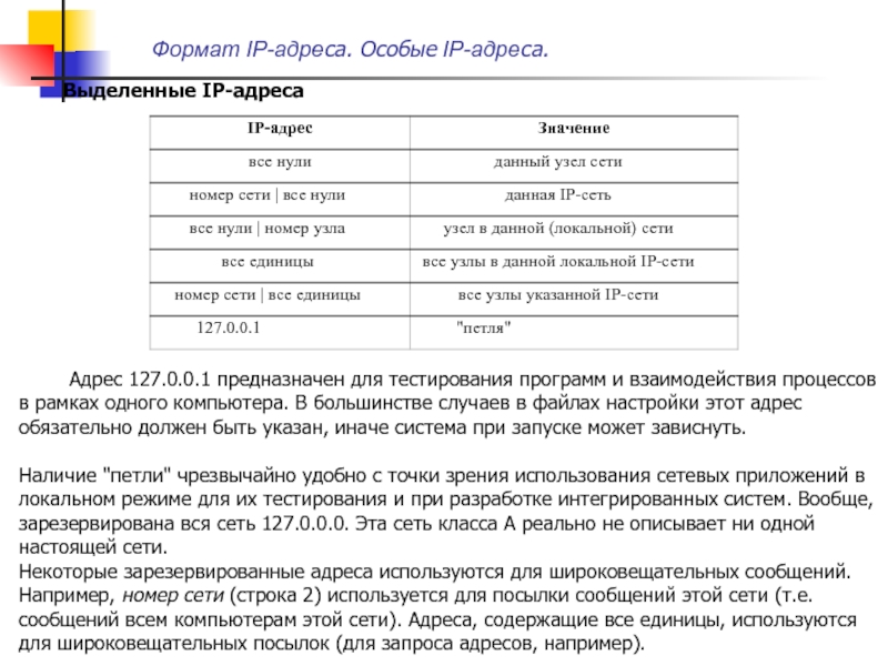 Слайд 29Формат IP-адреса. Особые IP-адреса.