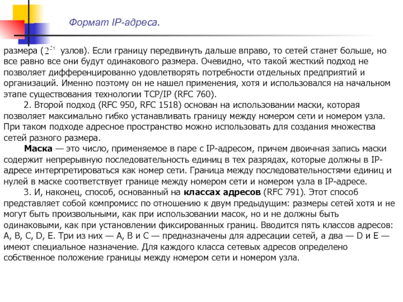 Слайд 30Формат IP-адреса. Использование масок при IP-адресации.