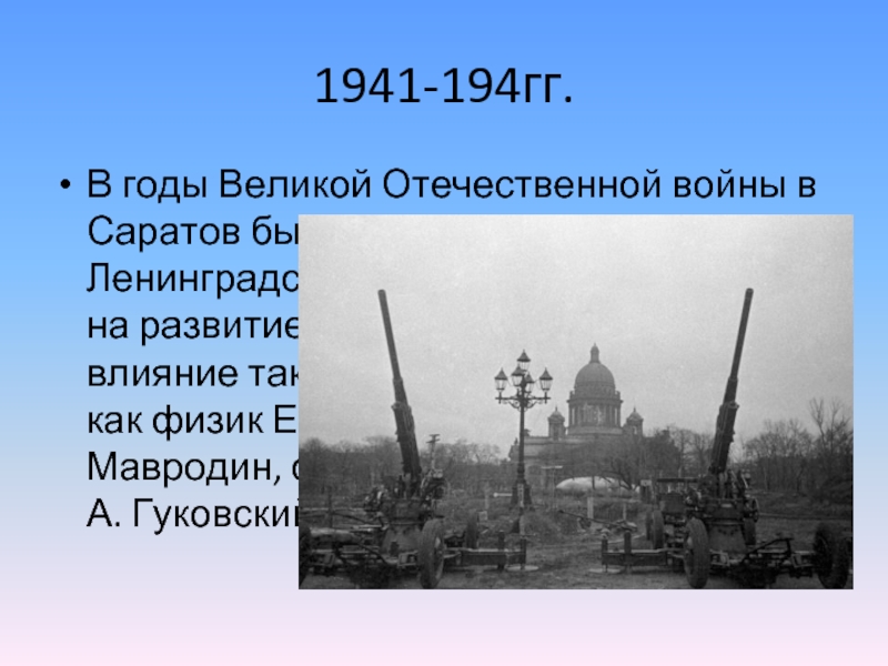 В годы Великой Отечественной войны в Саратов был эвакуирован Ленинградский университет.
