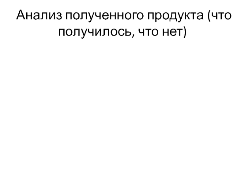 Слайд 9Анализ полученного продукта (что получилось, что нет)