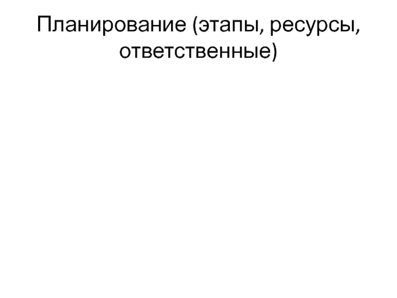 Слайд 6Планирование (этапы, ресурсы, ответственные)