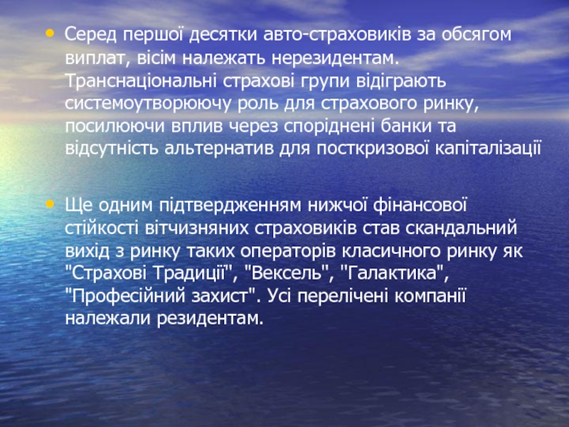 Слайд 20Міжнародна компанія “РricewaterhouseСoopers” провела дослідження місцевого ринку автострахування