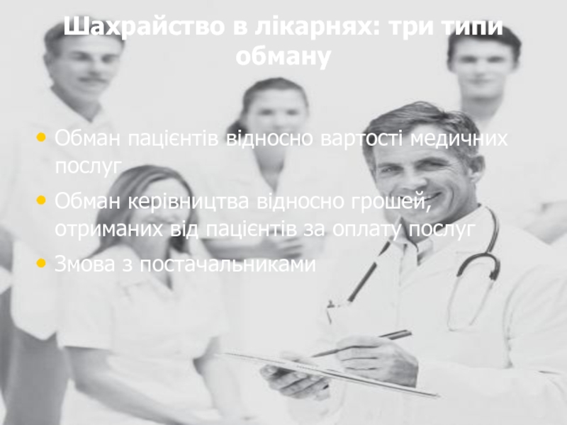 Слайд 37Шахрайство в лікарнях: три типи обману