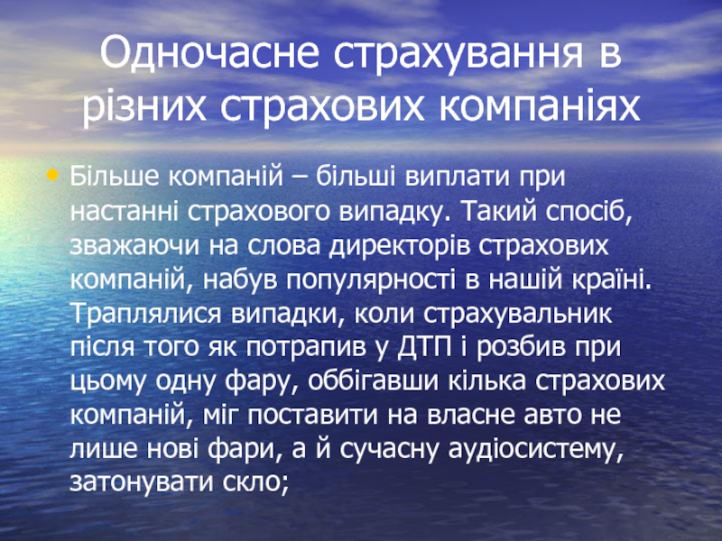 Слайд 11Одночасне страхування в різних страхових компаніях