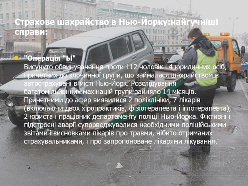 Слайд 41Страхове шахрайство в Нью-Йорку:найгучніші справи: