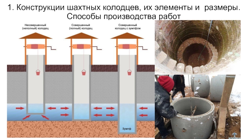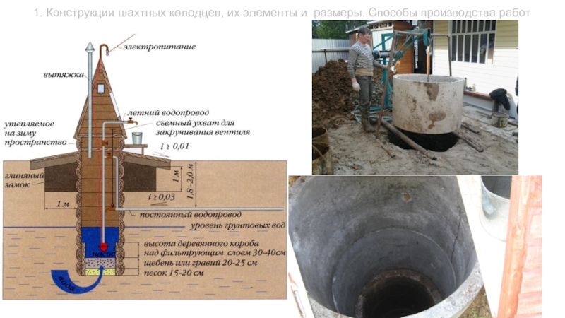 Слайд 31. Конструкции шахтных колодцев, их элементы и размеры. Способы производства работ