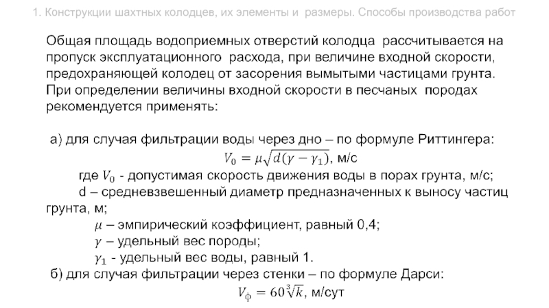 Слайд 51. Конструкции шахтных колодцев, их элементы и размеры. Способы производства работ