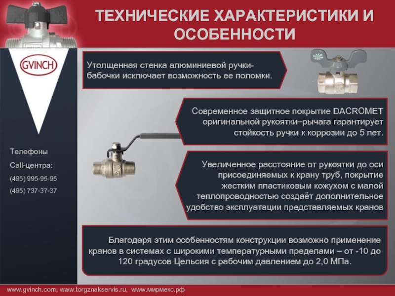 Увеличенное расстояние от рукоятки до оси присоединяемых к крану труб, покрытие жестким пластиковым кожухом с малой теплопроводностью создаёт дополнительное удобство эксплуатации представляемых кранов
