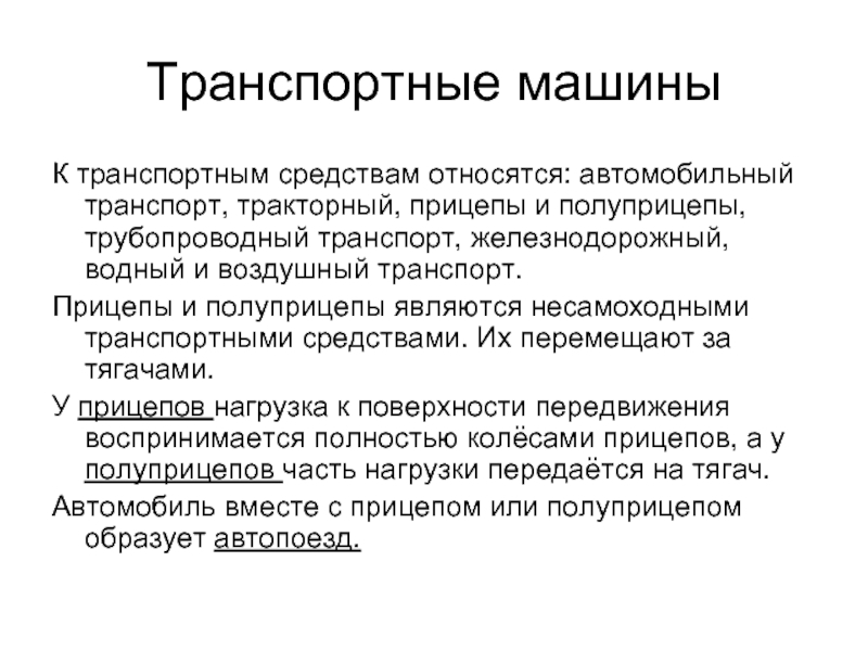 К транспортным средствам относятся: автомобильный транспорт, тракторный, прицепы и полуприцепы,