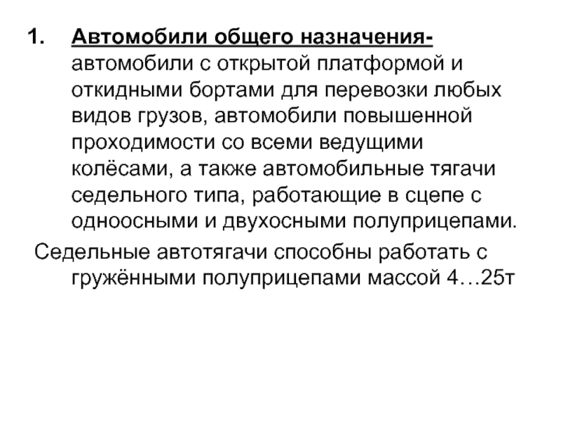 Слайд 6Автомобили общего назначения-автомобили с открытой платформой и откидными бортами для перевозки