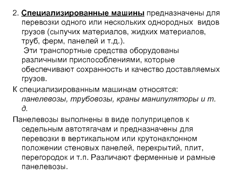 Слайд 132. Специализированные машины предназначены для перевозки одного или нескольких однородных видов