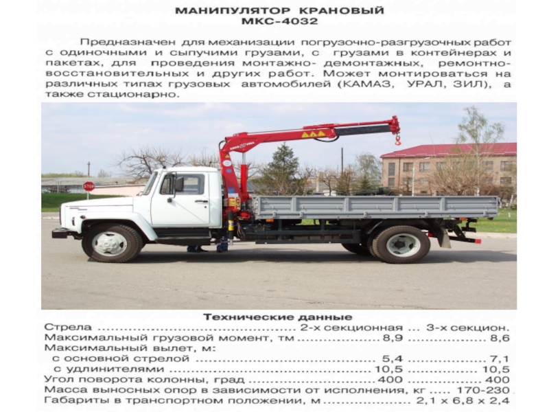 К специализированным машинам относятся: панелевозы, трубовозы, краны манипуляторы и т.д.