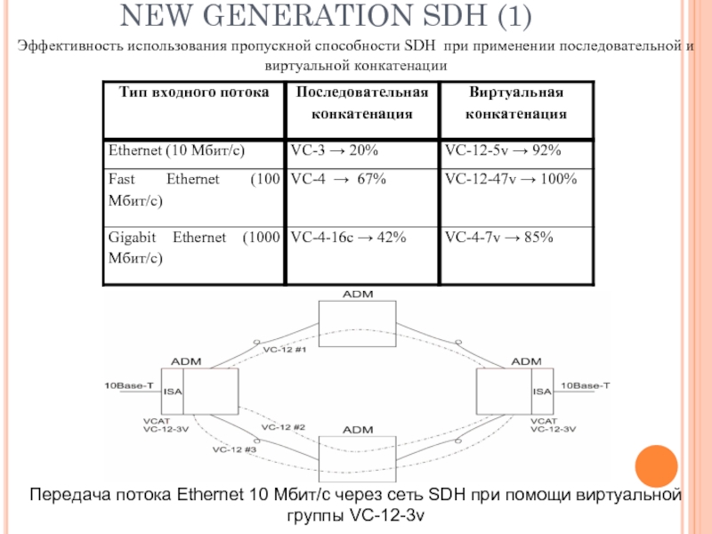 Передача потока Ethernet 10 Мбит/с через сеть SDH при помощи виртуальной группы VC-12-3v