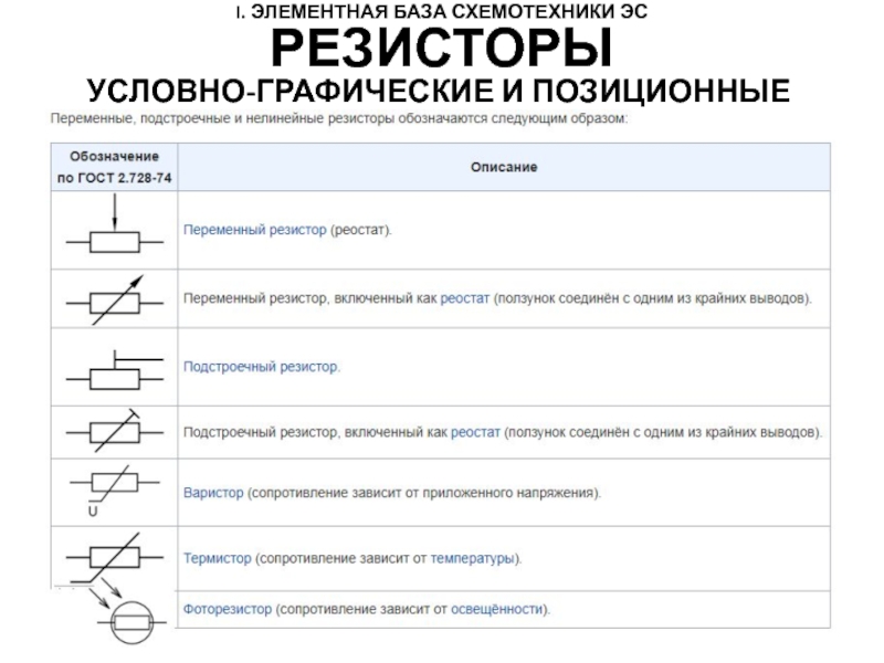 I. ЭЛЕМЕНТНАЯ БАЗА СХЕМОТЕХНИКИ ЭС