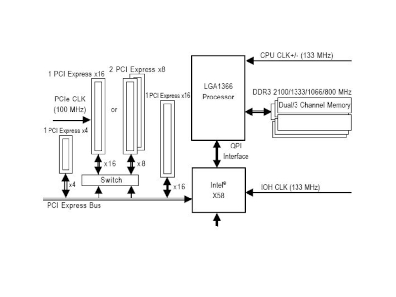 На материнской плате могут располагаться разъемы PCI-E поддерживающие соответствующие линии x1, x2, x4, x8, x12, x16 и x32.
