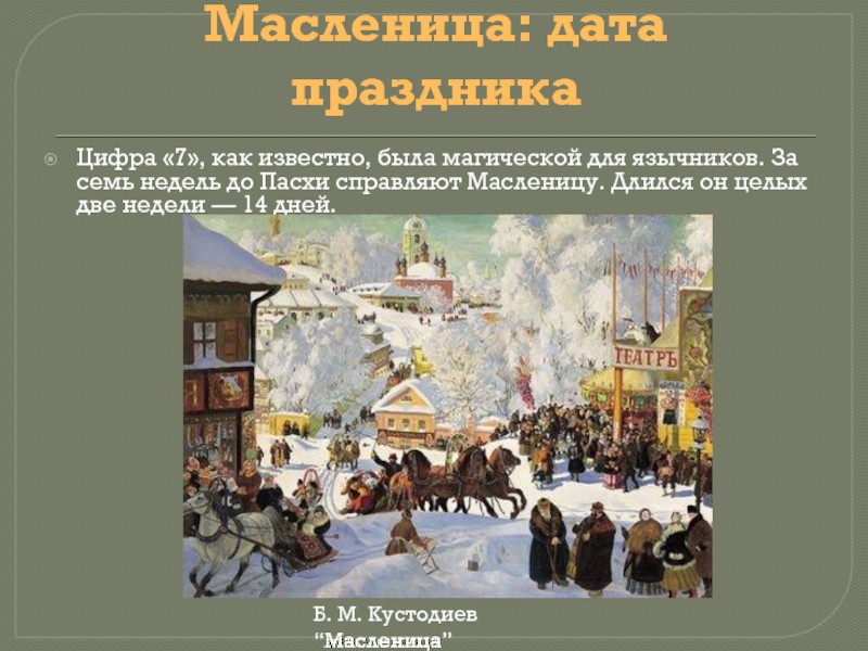 семь недель до Пасхи справляют Масленицу. Длился он целых две недели — 14 дней.
