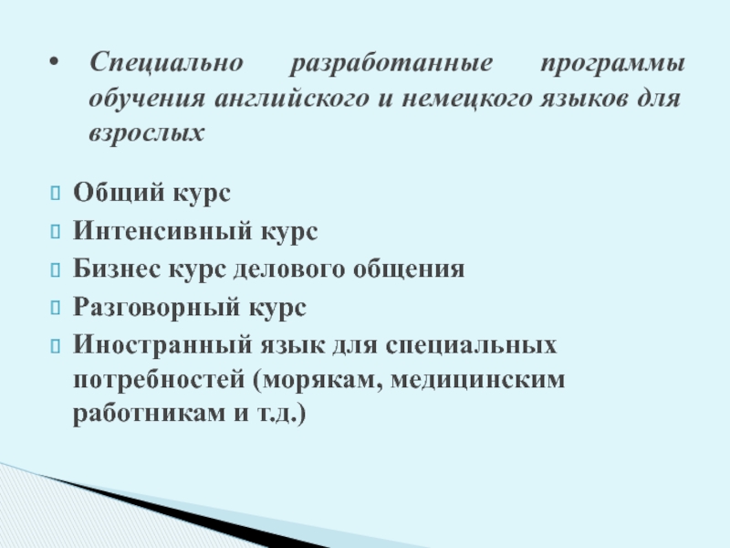 Специально разработанные программы обучения английского и немецкого языков для взрослых