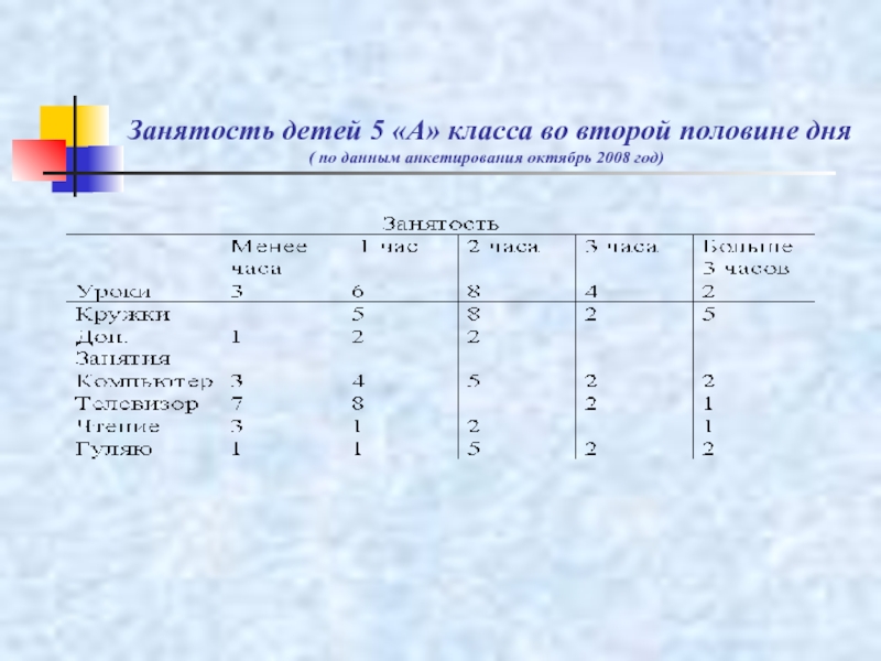 Слайд 20 Занятость детей 5 «А» класса во второй половине дня (