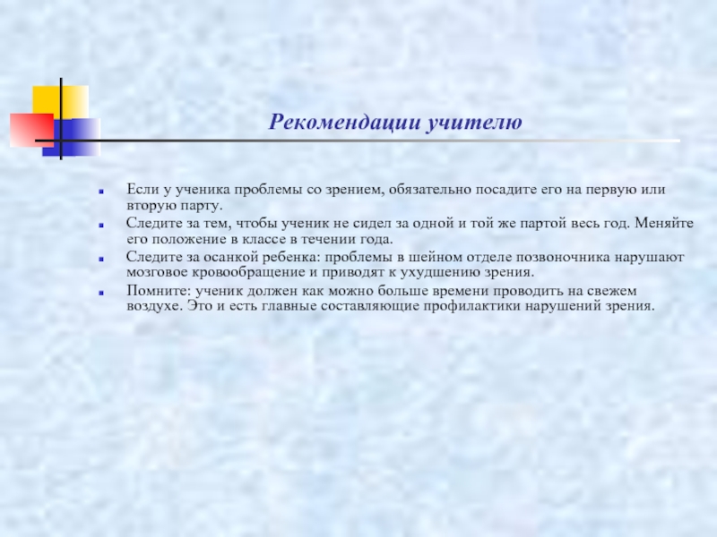 Если у ученика проблемы со зрением, обязательно посадите его на