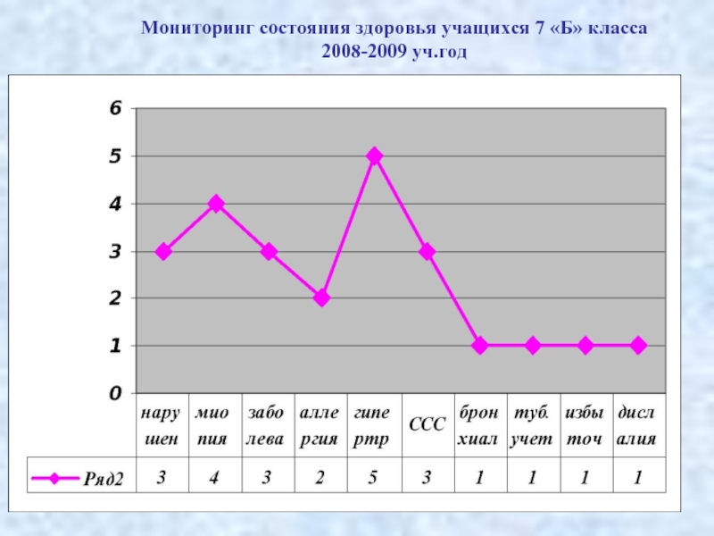 Слайд 14Мониторинг состояния здоровья учащихся 7 «Б» класса