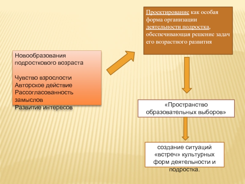 создание ситуаций «встреч» культурных форм деятельности и подростка.