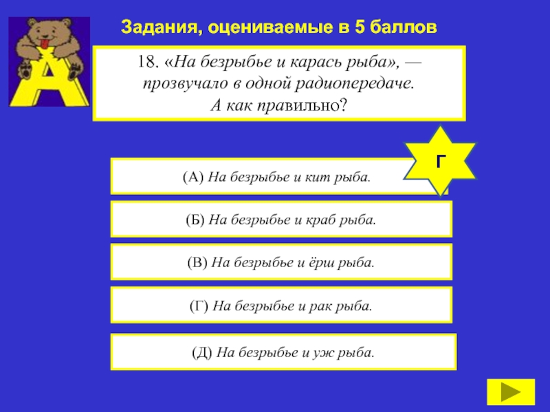 18. «На безрыбье и карась рыба», — прозвучало в одной радиопередаче.